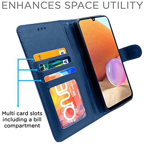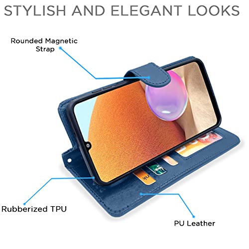 Pikkme Samsung Galaxy A32 Flip Case Leather Finish | Inside TPU with Card Pockets | Wallet Stand and Shock Proof | Magnetic Closing | Complete Protection Flip Cover for Samsung Galaxy A32 (Blue)- Best and cheap mobile covers in India