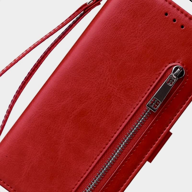 Case Type – Red Zipper Case With Cards & Cash Pockets Inside & 1 Zip Lock Pocket On Front
