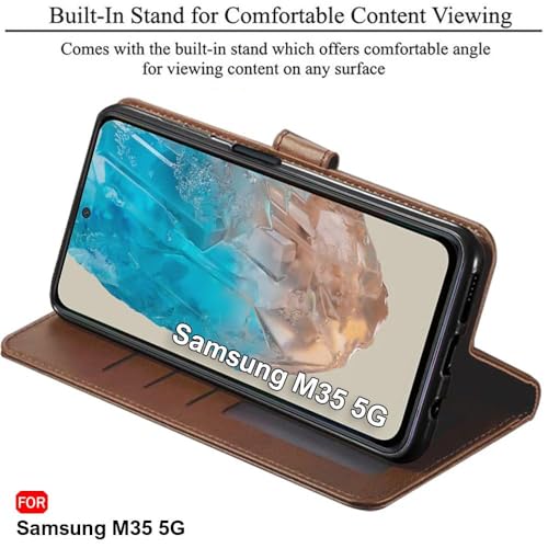 PRACTICAL STYLISH DESIGN – With 3 cardholder slots and a cash pocket, you can easily carry your ID, credit cards, driver’s license, and cash. The stand function is perfect for video chatting and watching films, adding convenience to your daily use.PRECISE CUTOUTS – This case offers easy access to all ports, controls, and buttons without needing to remove it. It’s designed for easy installation and removal, ensuring a hassle-free experience.PREMIUM MATERIAL – Crafted from premium leather and a durable TPU inner bumper, the case provides a comfortable touch and a pleasing look. The reinforced stitching enhances durability and adds an extra layer of protection.360 DEGREE PROTECTION – The case covers all sides and corners of your phone, safeguarding it from dust, scratches, bumps, and daily wear and tear. The strong hidden magnetic closure keeps the case securely closed, offering perfect screen protection.MADE FOR – Designed and Handcrafted Flip Mobile cover for – Samsung Galaxy M35 5G