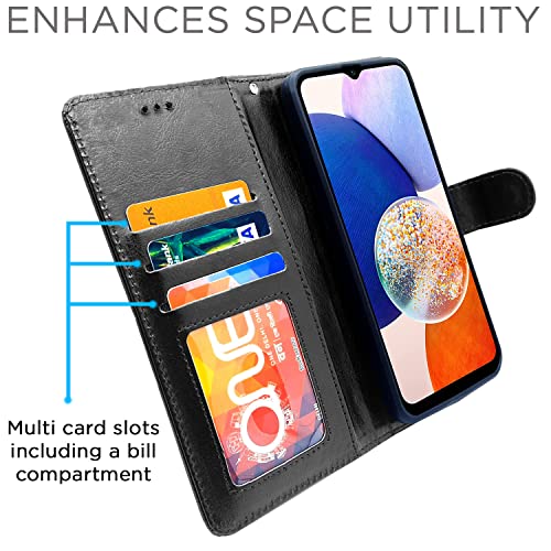 Kick back and relax with a kick-stand engineered into the design of Pikkme leather case. Become a walking mobile theater for quick media sessions on the go Enjoy entertainment while you eat and off your Samsung Galaxy A14 4G / A14 5G screen