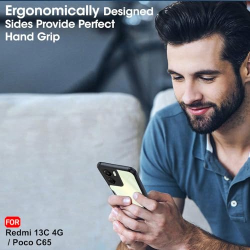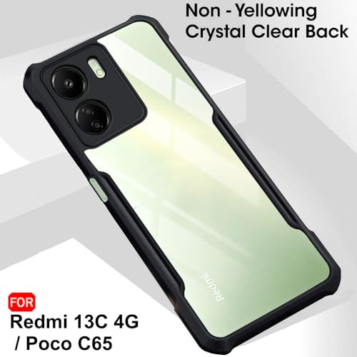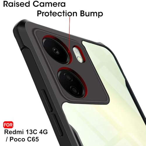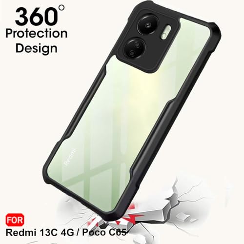 TheGiftKart Crystal Clear Back Cover Case for Mi Redmi 13C 4G / Poco C65 | 360 Degree Protection | Shock Proof Design | Transparent Back Cover Case for Redmi 13C / Poco C65 (PC & TPU, Black Bumper)- Best and cheap mobile covers in India