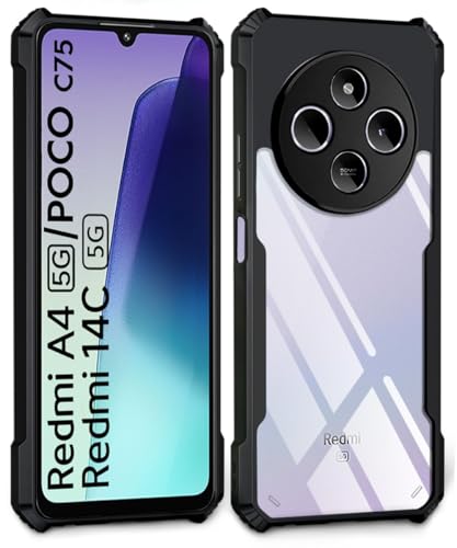 Designed Exclusively For Redmi A4 5G | Poco C75 5G | Redmi 14C 5G – Hybrid AirEDGE technology fusing Superior Quality TPU Material and a durable Clear Transparent back panel