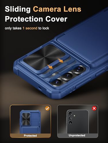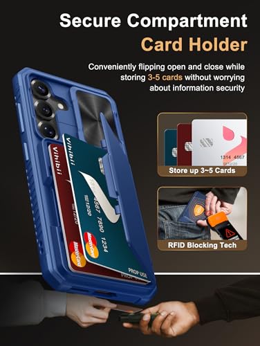 Vihibii for Samsung Galaxy S25 Case with Card Holder (4 Cards) [RFID Blocking] & Slide Camera Cover, Military Grade Drop Protection, Rugged Hard Back & Silicone Edge Wallet Case, 6.2″ 2025, Blue- Best and cheap mobile covers in India
