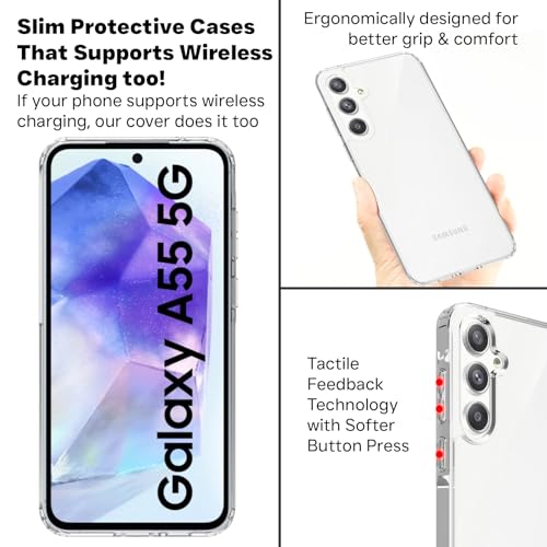 RIGGEAR Shockproof Clear Hybrid Armor Back Cover Case Compatible with Samsung Galaxy A55 5G (Clear PC + Clear TPU Bumper)- Best and cheap mobile covers in India