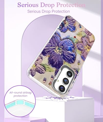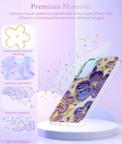 🌺【Stylish Bling Design】 – The sparkling diamond-like colorful vintage oil painting floral flower design makes your phone so pretty. The cute wavy border design makes your phone fashion and more eye-catching.