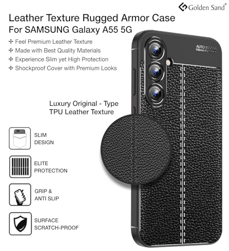 [Material] Get the all new improved Vegan Leather Cover with subtle stitch pattern for your Samsung Galaxy A55 5G, Samsung Galaxy A55. This is a flexible Plastic TPU cover with Leather-like feel and look, (Not Genuine Leather Cover) with higher durability compared to traditional leather.