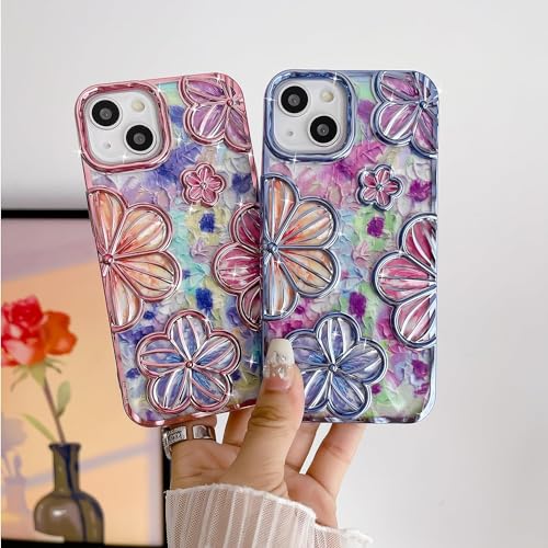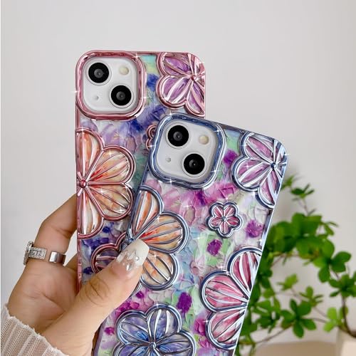 mobistyle Designed for iPhone 15 Cover| Electroplating Bling Colourful Floral 3D TPU Camera Protection Back Cover Case for Women Girls (Blue)- Best and cheap mobile covers in India