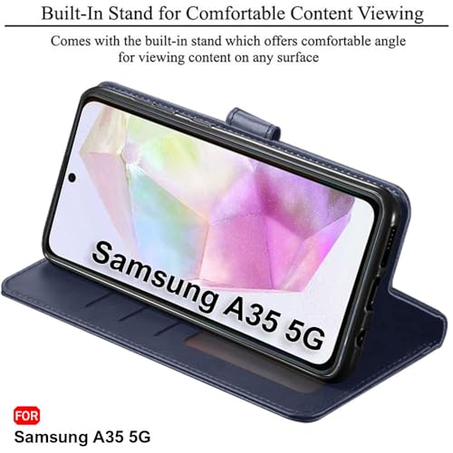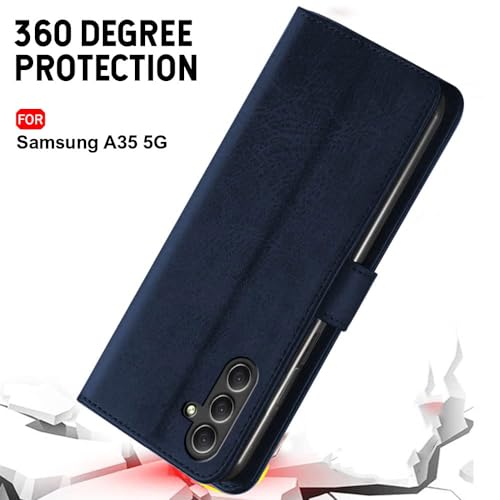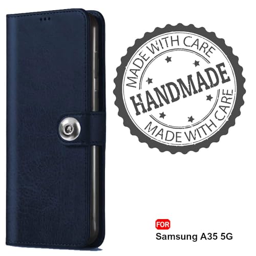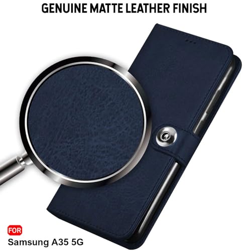 TheGiftKart Flip Cover Back Case for Samsung Galaxy A35 5G | Genuine Leather Finish | Designer Button | Inbuilt Pockets & Stand | Flip Back Cover Case for Samsung Galaxy A35 5G (Faux Leather, Blue)- Best and cheap mobile covers in India