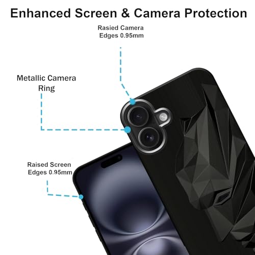 TOUCCH 3D Face Case Cover for iPhone 16| Shock Proof Design with Camera Protection Ring| Liquid Case (Microfibre Lining) for iPhone 16 | Silicone – Black- Best and cheap mobile covers in India