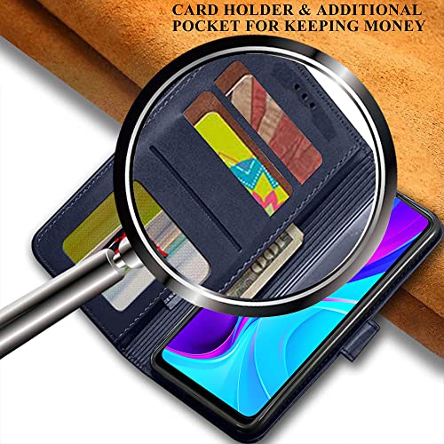 TheGiftKart Flip Back Cover Case for Redmi 9 / Redmi 9 Activ/Poco C31 | Leather Finish | Inbuilt Stand & Pockets | Wallet Flip Case Back Cover for Redmi 9 / Redmi 9 Activ/Poco C31 (Blue & Brown)- Best and cheap mobile covers in India