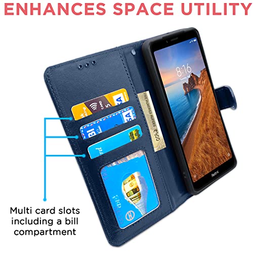 Pikkme Mi Redmi 7A Flip Case Leather Finish | Inside TPU with Card Pockets | Wallet Stand and Shock Proof | Magnetic Closing | Complete Protection Flip Cover for Mi Redmi 7A (Blue)- Best and cheap mobile covers in India