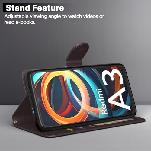 Invest in your brand new Redmi A3 (2024) device’s protection today through this fit to use executive Coffee leather stand wallet case flip cover and save yourself from the heartbreak and agony of watching the scratches and damages on your device multiply periodically. This sleek executive flip cover case is designed to a perfect fit on your mobile and smooth surface further adds to its polished looks. This pouch comes with inner shell back cover that does not break easily and aids in shock absorption during impacts. This wallet case comes with card slots to store receipts, cards or emergency cash. You can now video chat or watch movies hands free in landscape mode with the wallet stand. Perfect and precise cutouts allow easy access to all ports.