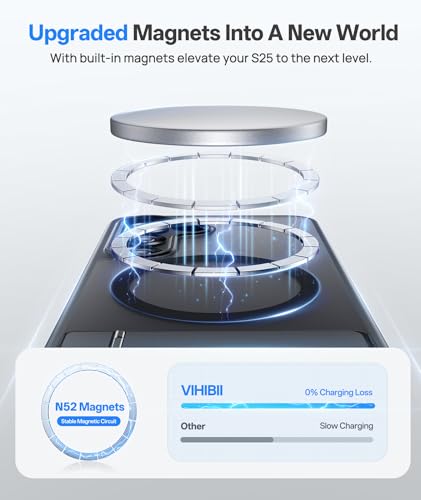 【Adjustable Metal kickstand】Vihibii for samsung s25 case magnetic is designed with a built-in metal kickstand in the back. The flexible stand supports a wide range of adjustment angles, whether you’re enjoying your favorite TV show or video chatting with your family, this stand ergonomically provides a horizontal or vertical viewing angle to ensure optimal viewing comfort